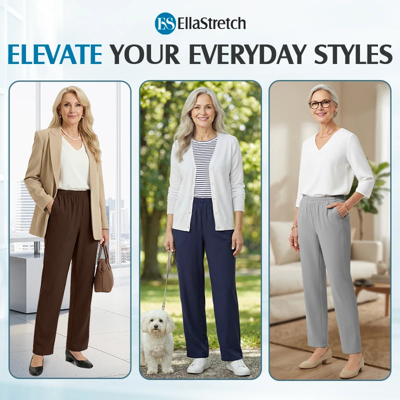 EllaStretch pants are crafted with EasyFlex™ Ultra Stretch, designed for women who value flexibility, all-day ease, and a polished look—without tight waistbands or stiff fabric.